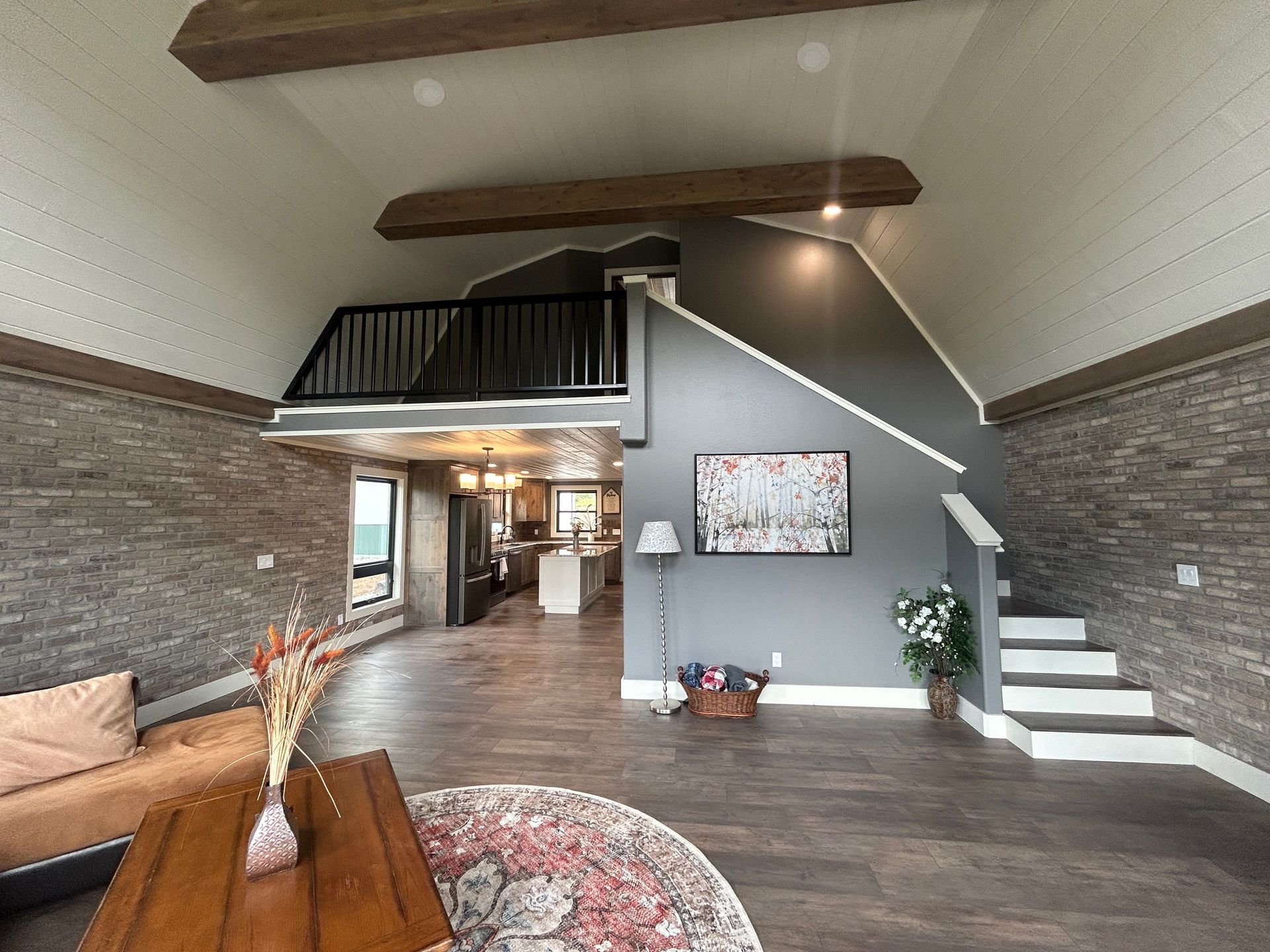 This 2025 shop is 1,800 sq. ft. with a 1,200 sq. ft. second level. There is plenty of room for vehicles plus extra room for toys. Next just down the freshly laid road behind the shop we have plenty of room for parking trailers or RVs.